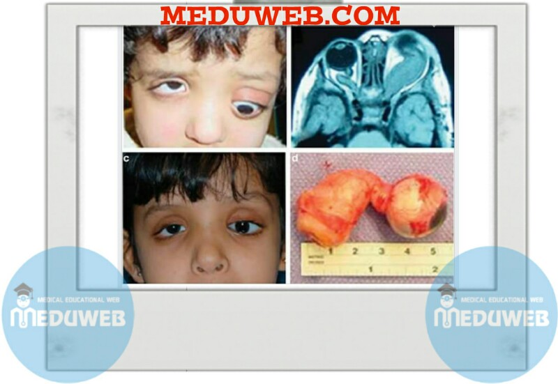 Extraconal superior orbital mass with inferior displacement of the globe( dystopia)