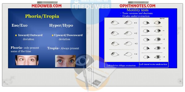 ● Both Phoria and tropia are measured by the alternate cover test. With uncovering both eyes are observed for a correcting movement